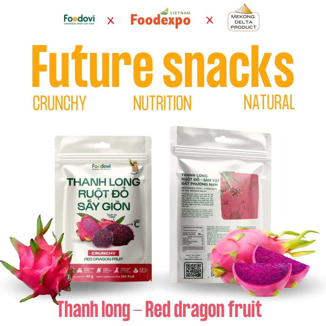 Foodovi’s most popular products are crispy dried tropical fruits, including pineapple, red dragon fruit, and mango. These fruits are carefully selected and processed using modern drying techniques that help preserve their natural sweetness, nutrients, and vibrant color. Unlike many conventional snacks, Foodovi products contain no preservatives and very little or no added sugar, allowing consumers to enjoy the true flavor of the fruit itself.