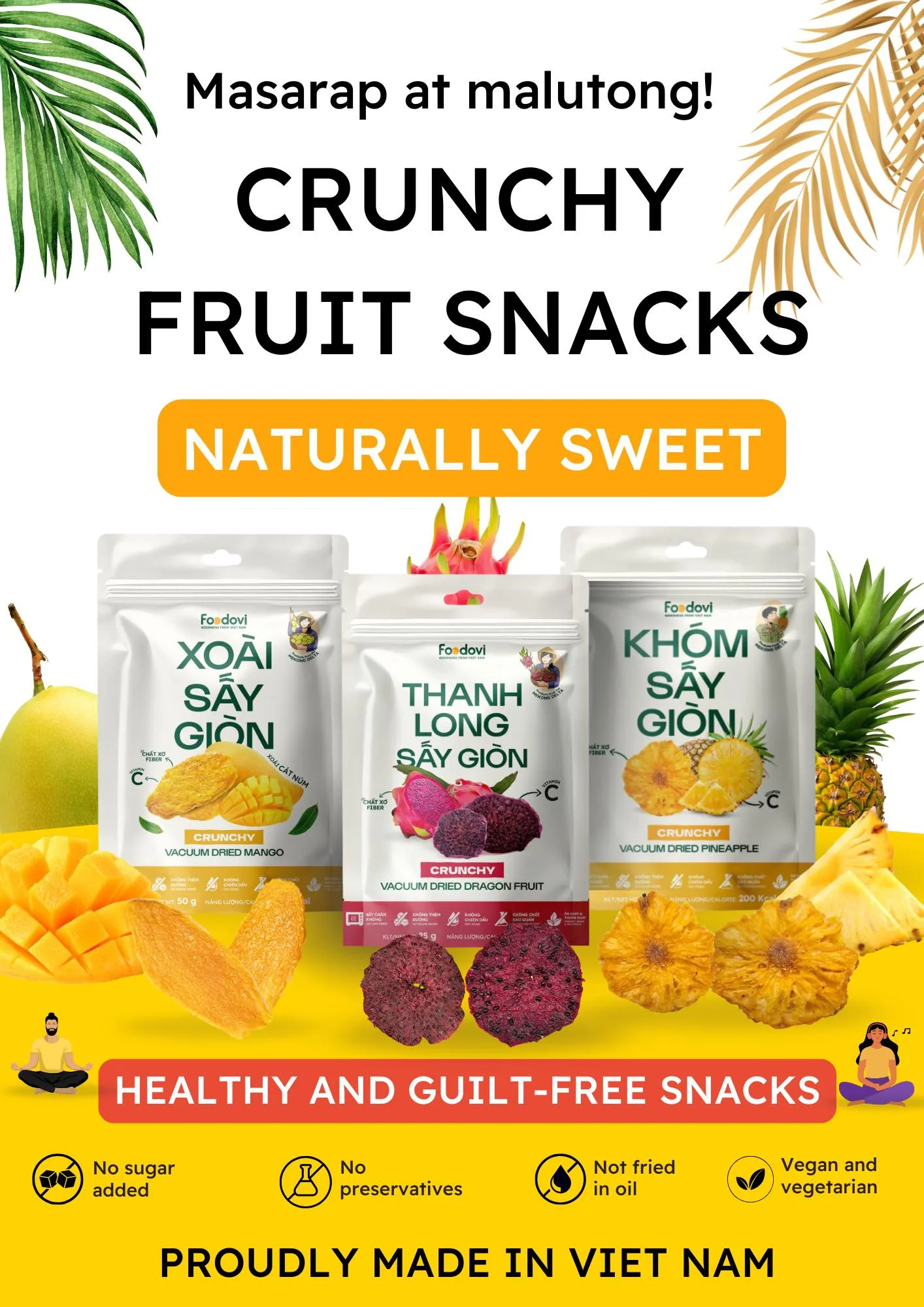 Foodovi started its journey in the heart of Vietnam’s agricultural hubs. Observing the abundance of seasonal fruits like the golden pineapples of the South, the deep crimson dragon fruits, and the buttery mangoes of the Mekong Delta, the founders wanted to create a bridge. They saw an opportunity to support local farmers while solving the challenge of enjoying tropical flavors year-round. Foodovi isn’t just a snack company; it’s a tribute to the hardworking farmers and the natural bounty of the Vietnamese countryside.