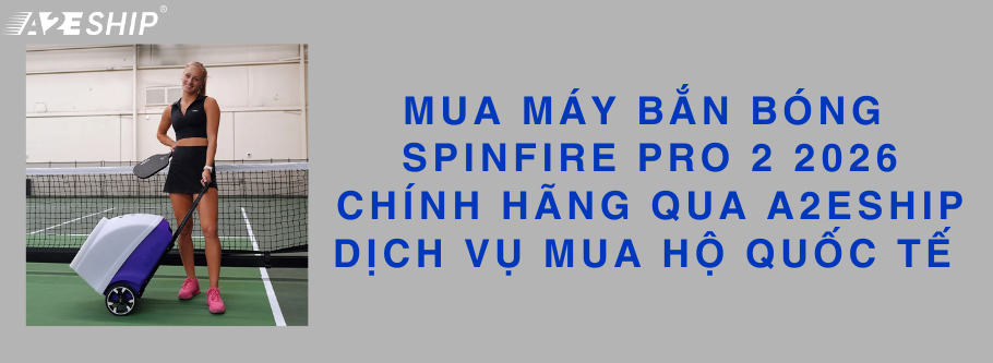 Nâng tầm sân Pickleball với máy Spinfire Pro 2. A2EShip – Dịch vụ mua hộ quốc tế an toàn, uy tín, có tracking rõ ràng giúp bạn sở hữu máy chính hãng giá gốc từ Mỹ/Úc.