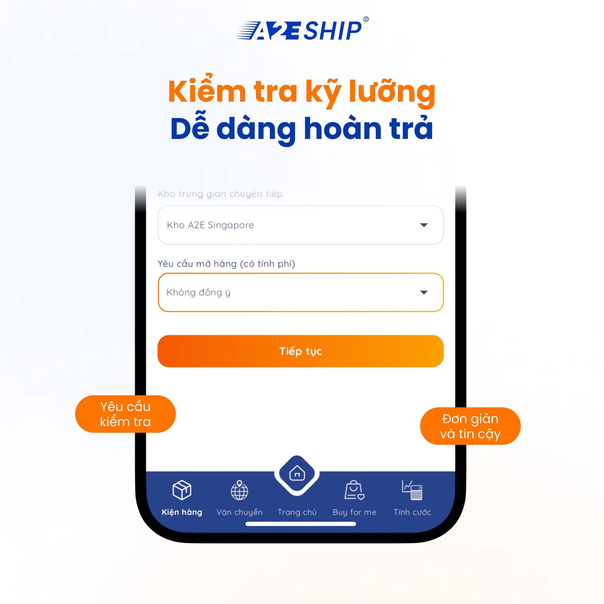 Thay vì phải tự mình xử lý các bước phức tạp như tạo tài khoản, thanh toán quốc tế, theo dõi đơn hàng, xử lý thuế – hải quan…, A2EShip sẽ đứng ra mua hộ trọn gói theo đúng yêu cầu của khách hàng.